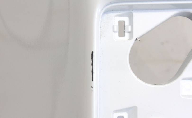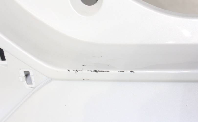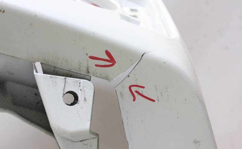 Отверстия под сонары. Есть царапины и потертости, разрывы снизу по углам, крепления без дефектов. Запчасть из Японии, без пробега по РФ.