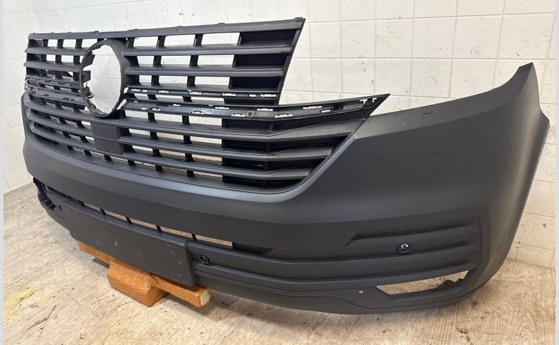 БАМПЕР ПЕРЕДНИЙ VOLKSWAGEN TRANSPORTER T6 РЕСТАЙЛИНГ ПОД ПАРКТРОНИКИ, БУ ОРИГИНАЛ, НЕБОЛЬШИЕ ЦАРАПИНЫ