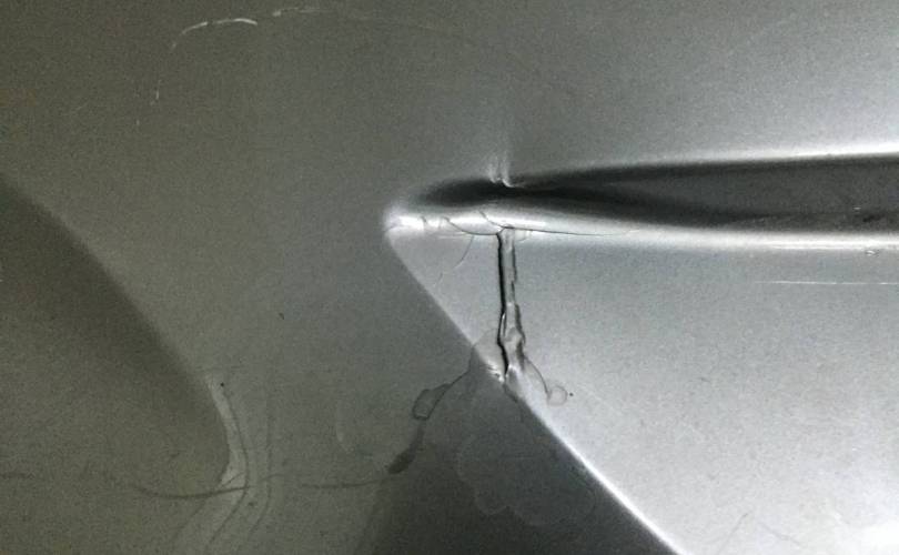 Для кузова хэтчбек. Оригинал. Ранее ремонтирован. Царапины, вмятины, отсутствует фрагмент крепления.