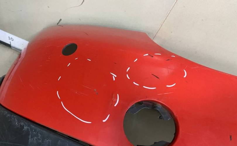 Оригинал. Под парктроники. Вмятины и трещины молдинга. Потертости и царапины. Повреждены два крепления.