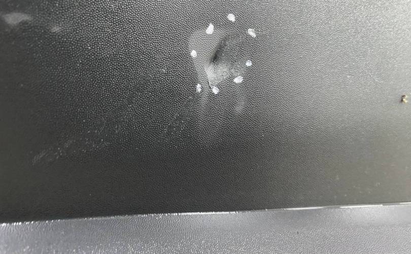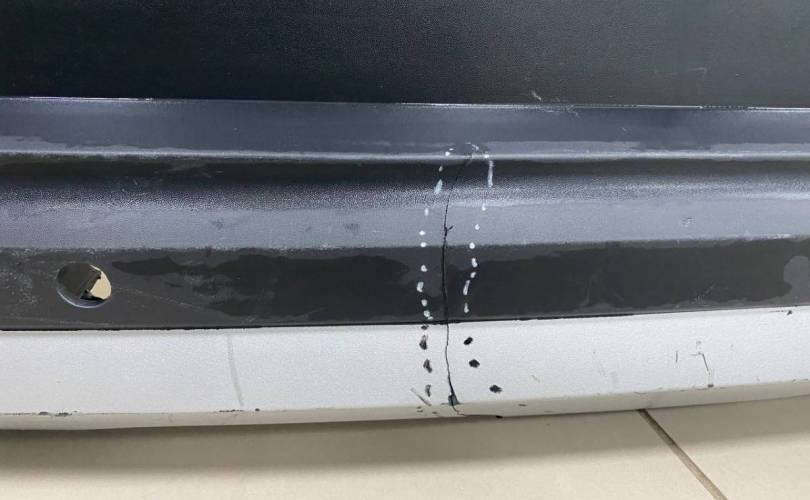 Оригинал. Потертости и царапины. Трещина, небольшая вмятина, нештатное отверстие, повреждено крепление парктроника.