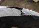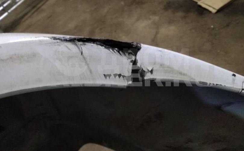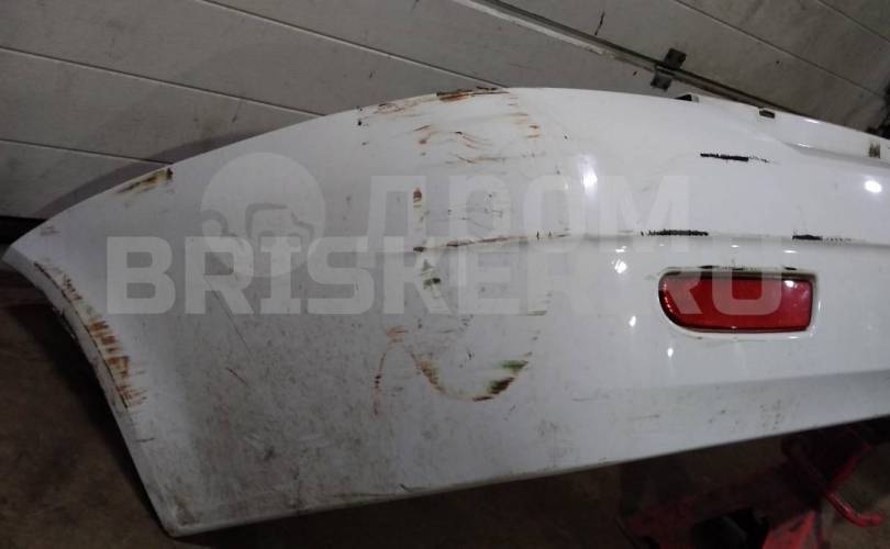 Царапины по бамперу. Заломан пластик под левым фонарем.