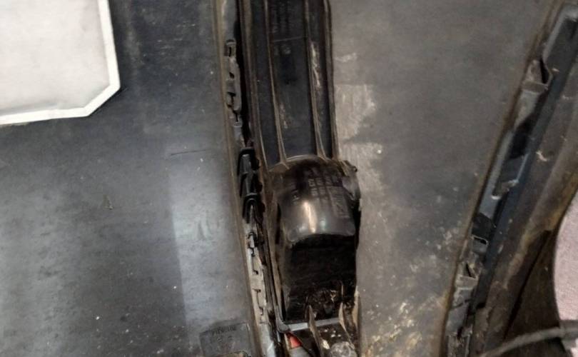 в сборе: верхняя часть, средняя 7P6807521A, нижняя (спойлер) 7P6807568, верхняя накладка хром, отражатели 7P6945701C и 7P6945702C , заглушки 7P6807449A и 7P6807450A, парктроники 4 шт., проводка 7P6971104C