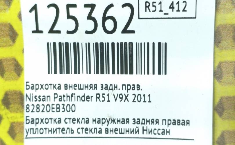 Бархотка стекла наружная задняя правая уплотнитель стекла внешний Ниссан Патфайндер 3 Р51 бу оригинал