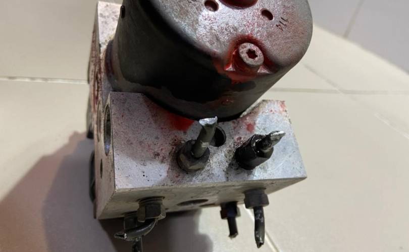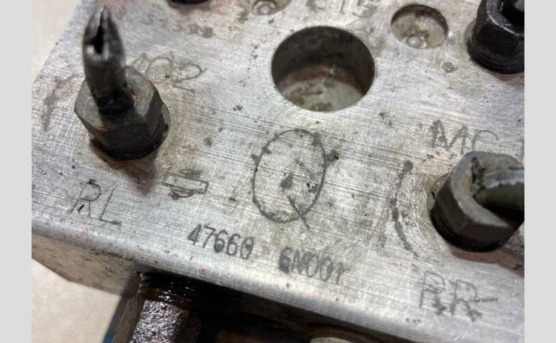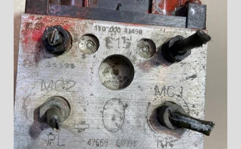 Блок ABS. Разбор Nissan Sunny 2002 года (Ниссан Санни 2002 года), двс QG13(DE) 1.3 л. 90 л. с., акпп RE4F03B(FQ40), передний привод, кузов B15 легковой седан, правый руль, цвет синий-перламутровый металлик.
