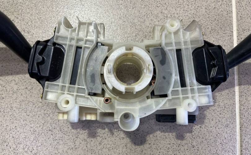 Блок подрулевых переключателей.Разбор Мазда 323 2001 год (Mazda 323 2001 г.) двс 1.6 л. 98 л. с., АКПП, передний привод, кузов легковой седан BJ, цвет серо-золотистый, шестое поколение, левый руль,по запчастям.
