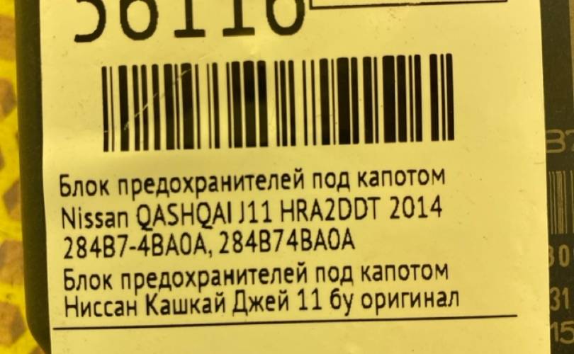 Блок предохранителей под капотом Nissan QASHQAI 2014 284B74BA0A J11 HRA2DDT