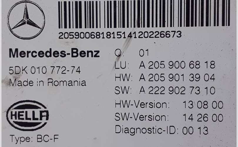 Блок предохранителей SAM Mercedes-Benz C-Class 2014 A2059006818 W205, передний