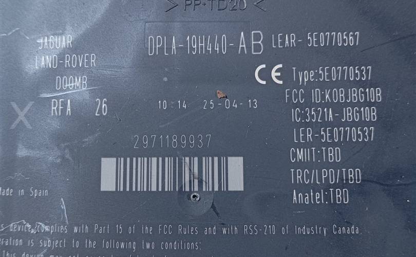 Блок управления без ключевым доступом Jaguar XF DPLA19H440AB X250