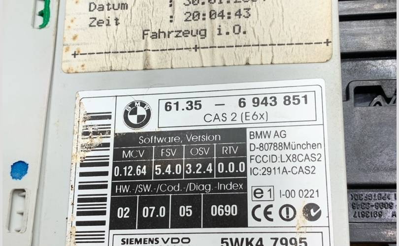 Блок управления CAS Bmw 5-Series 2004 61356943851 E60 N62B44A