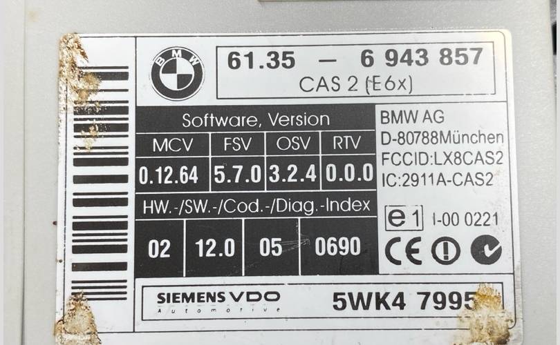 Блок управления CAS Bmw 5-Series 2004 61356943857 E60 M54B25 (256S5)