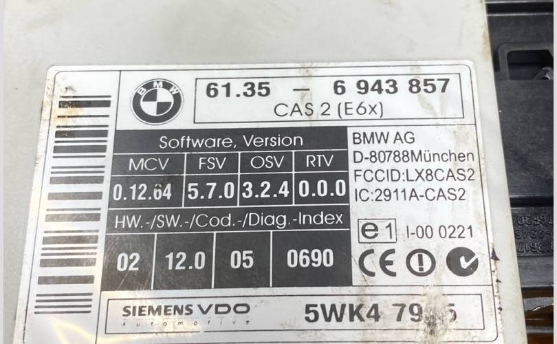 Блок управления CAS Bmw 6-Series 2004 61356943857 E63 N62B44A