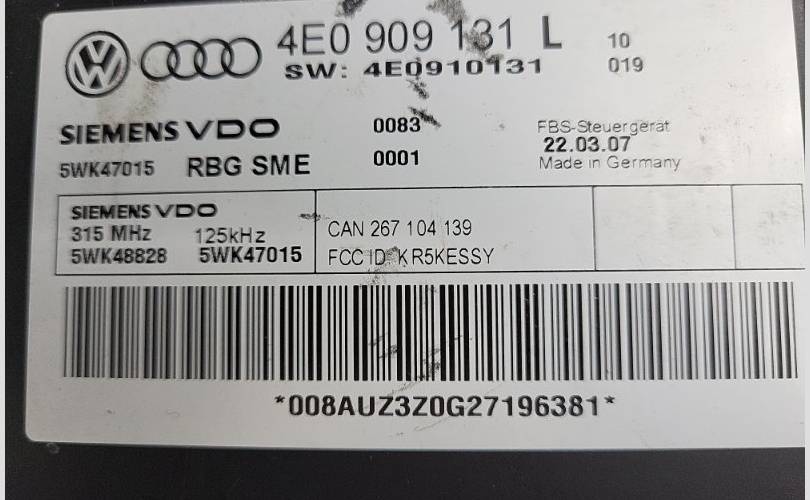 Блок управления центральным замком Audi A8 2009 4E0909131L D3 BVJ 4.2