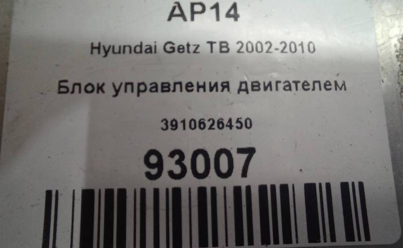 Блок управления двигателем на Hyundai GETZ I (2002—2005) I рестайлинг (2005—2011) 3910626450