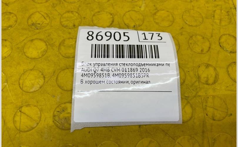 Блок управления стеклоподъемниками AUDI Q7 2016 4M0959851B5PR 4MB CVM 011869, передний левый
