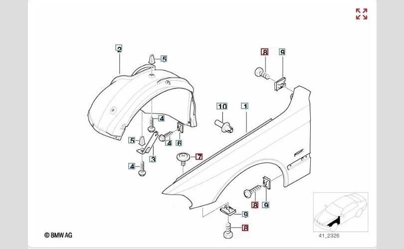 Комплект болтов для передних крыльев.