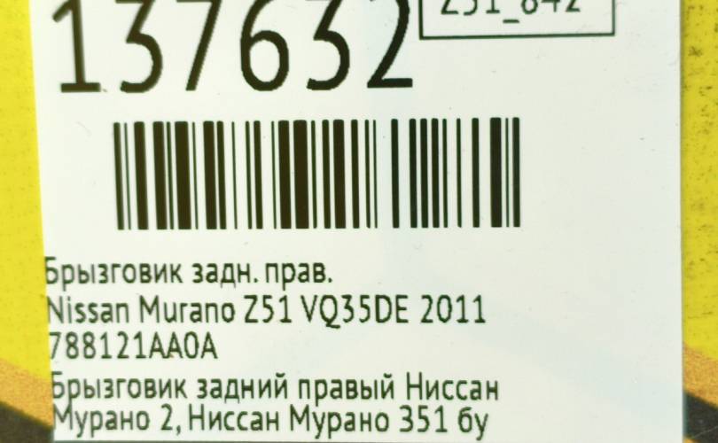 Брызговик Nissan Murano 2011 788121AA0A Z51 VQ35DE, задний правый