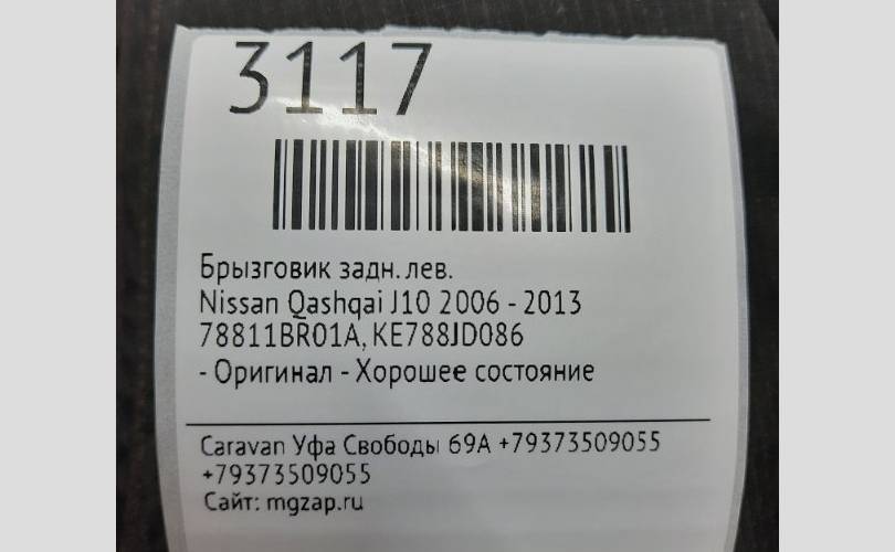 Брызговики NIssan Qashqai 2006 - 2013 78811BR01A J10, задние левые