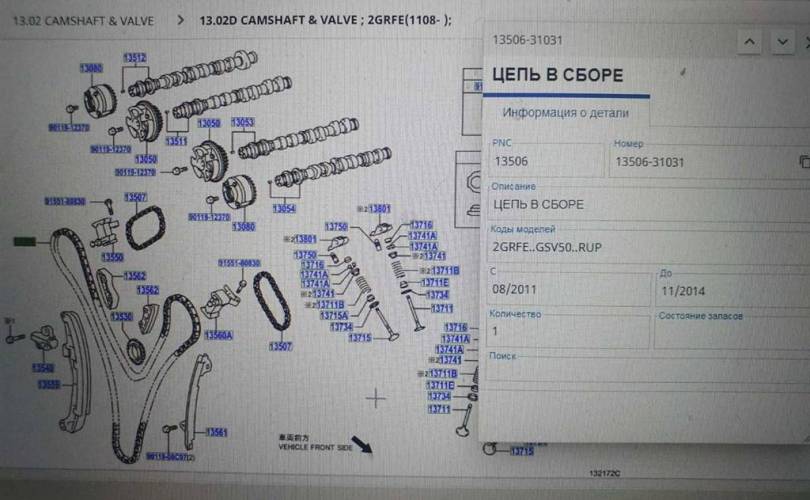 Цепь ГРМ Toyota Camry XV50 (2011—2014)