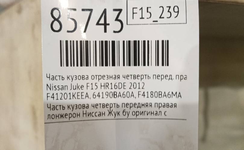 Часть кузова четверть Nissan Juke 2012 F41201KEEA F15 MR16DDT, передний правый