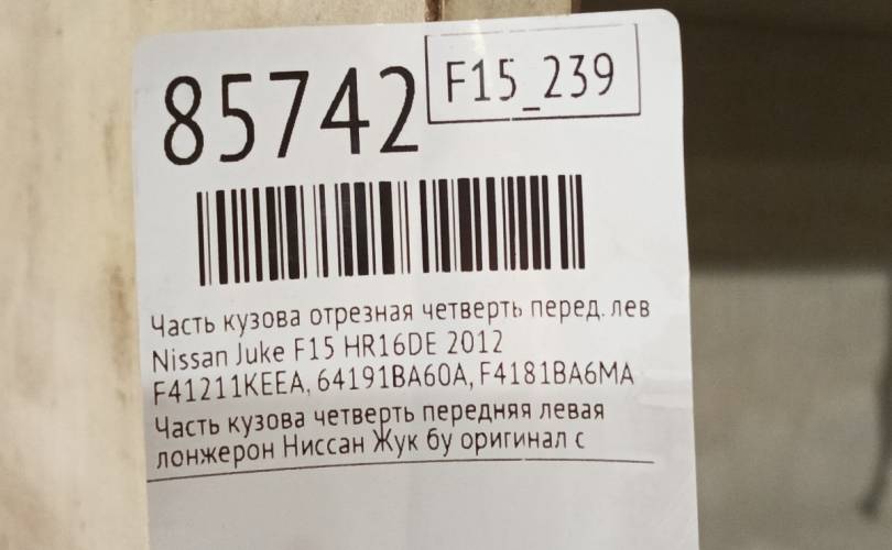 Часть кузова четверть Nissan Juke 2012 F41211KEEA F15 MR16DDT, передний левый