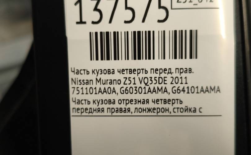 Часть кузова четверть Nissan Murano 2011 751101AA0A Z51 VQ35DE, передний правый