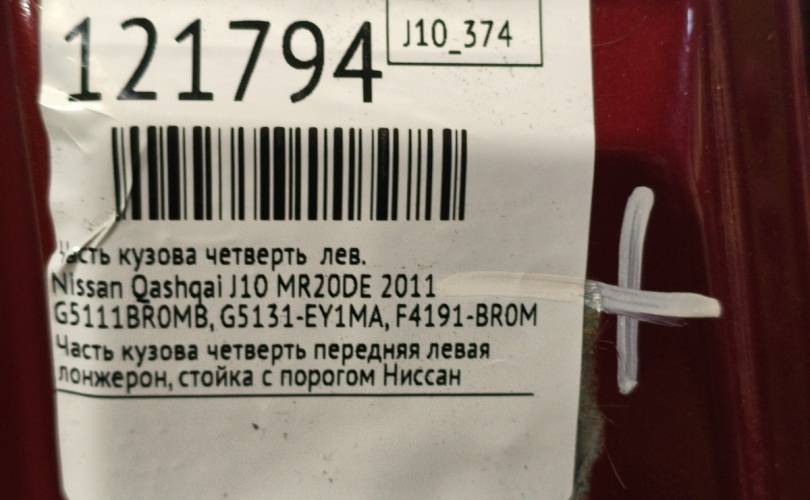 Часть кузова четверть Nissan Qashqai 2011 G5111BR0MB J10 MR20DE, левый