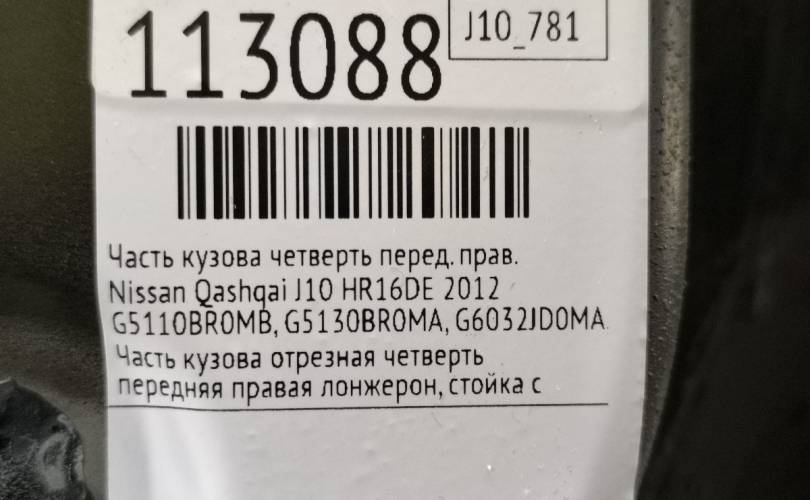Часть кузова четверть Nissan Qashqai 2012 G5110BR0MB J10 HR16DE, передний правый