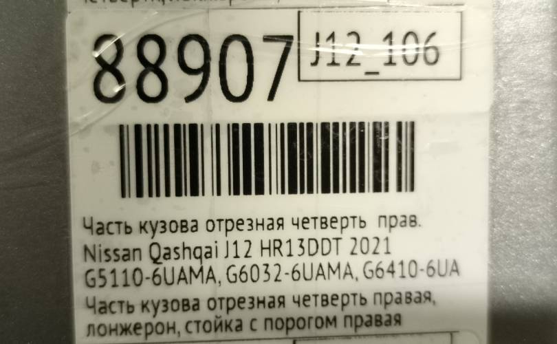 Часть кузова четверть Nissan Qashqai 2021 G51106UAMA J12 HR13DDT, правый