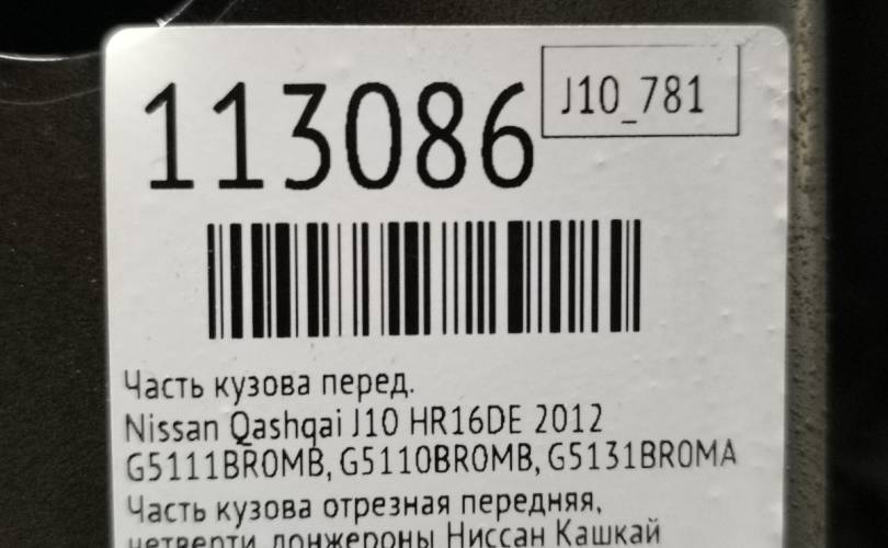 Часть кузова Nissan Qashqai 2012 G5111BR0MB J10 HR16DE, передний