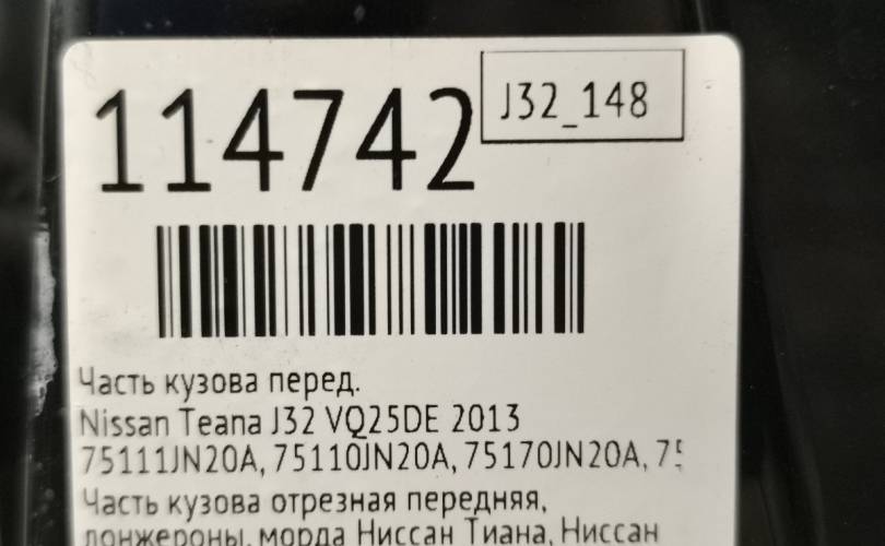 Часть кузова Nissan Teana 2013 75111JN20A J32 VQ25DE, передний