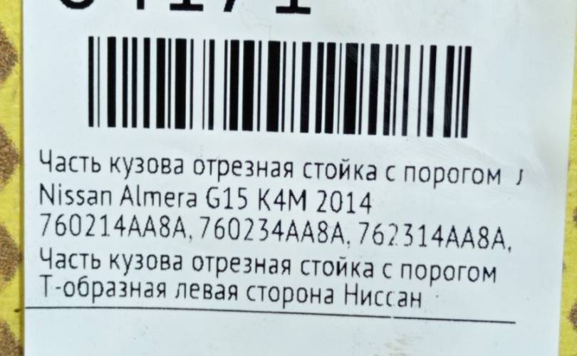 Часть кузова стойка с порогом Nissan Almera 2014 760214AA8A G15 K4M, левый