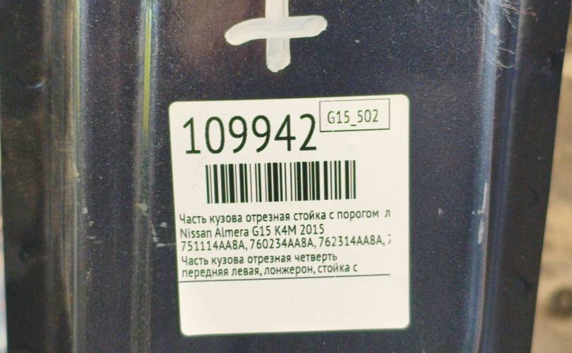 Часть кузова стойка с порогом Nissan Almera 2015 751114AA8A G15 K4M, левый