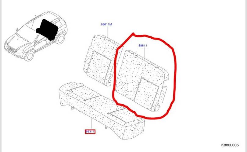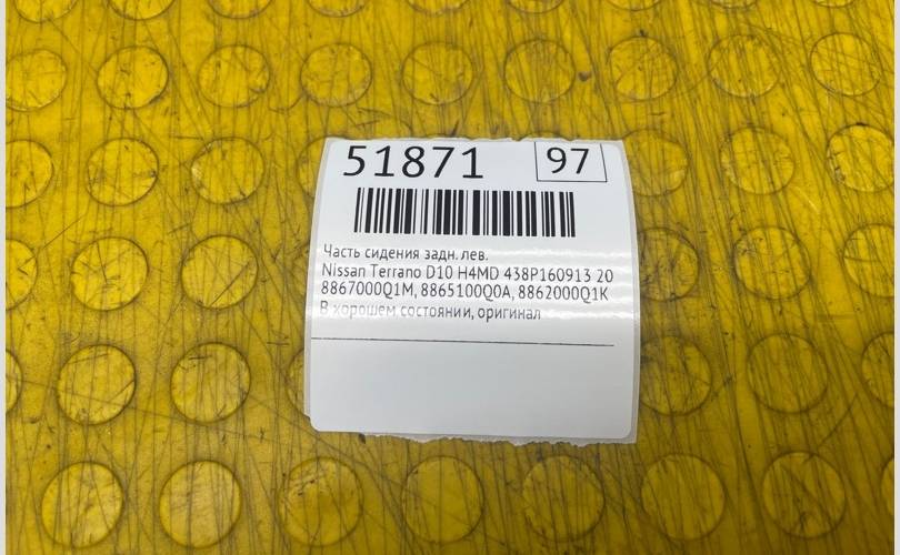 Часть сидения Nissan Terrano 2022 8867000Q1M D10 H4MD 438P160913, задний левый