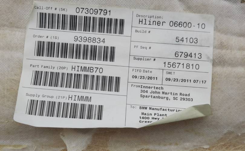 Черный потолок (антрацитовый) S775 BMW X5 23.09.2011 51448037340 E70 N55B30A