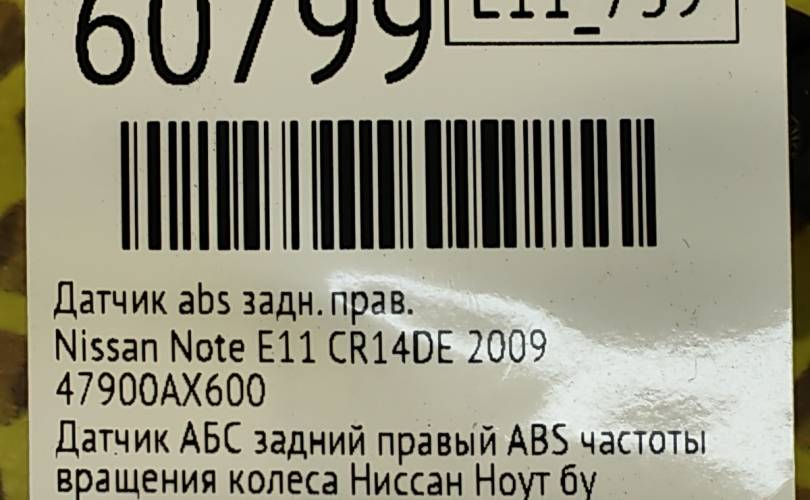 Датчик АБС Nissan Note 2009 47900AX600 E11 CR14DE, задний правый