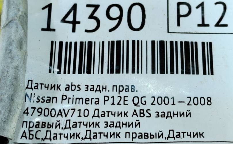 47900AV710 Датчик ABS задний правый,Датчик задний АБС,Датчик,Датчик правый,Датчик правый АБС Ниссан Примера П12 бу оригинал 47900AV710 116 л.с.