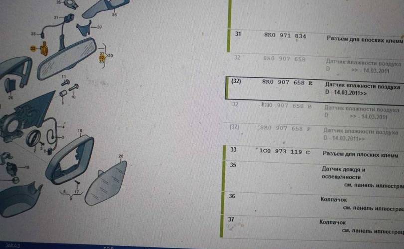 Датчик влажности воздуха Audi A8 2010-2017