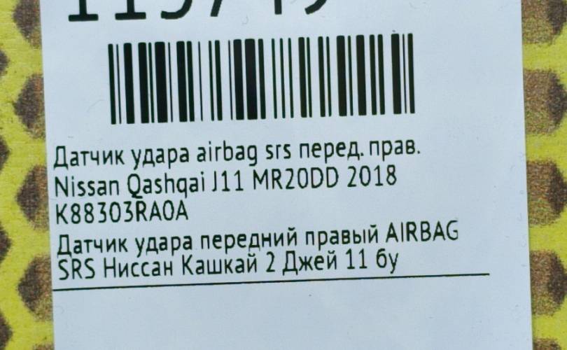 Датчик удара AIRBAG SRS Nissan Qashqai 2018 K88303RA0A J11 MR20DD, передний правый