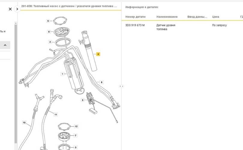 Датчик уровня топлива правый верхний Bentley Continental GT I (2003—2011)