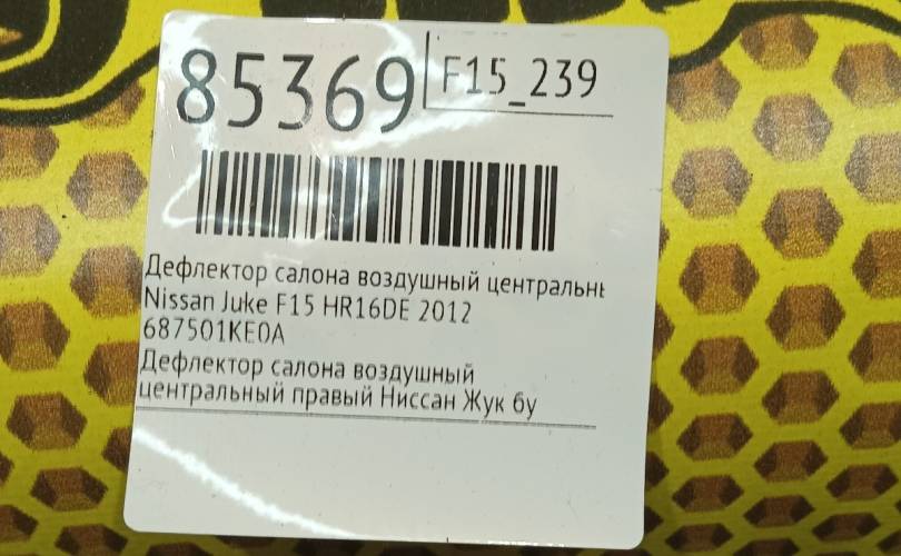 Дефлектор салона центральный Nissan Juke 2012 687501KE0A F15 MR16DDT, правый