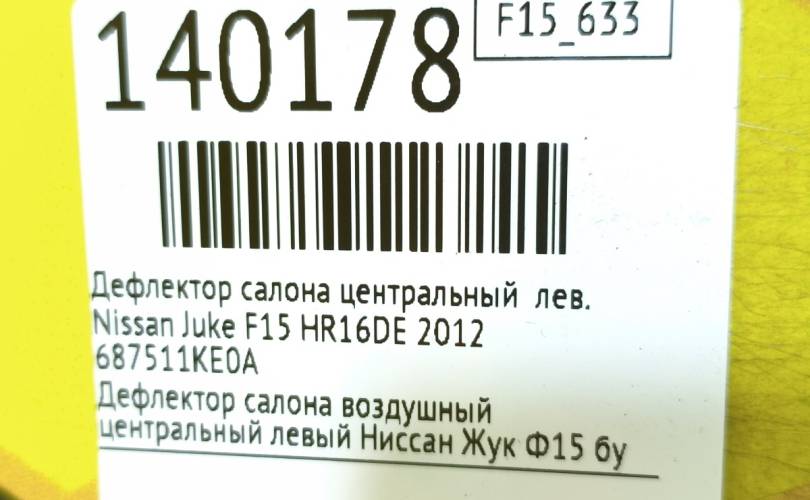 Дефлектор салона центральный Nissan Juke 2012 687511KE0A F15 HR16DE, левый