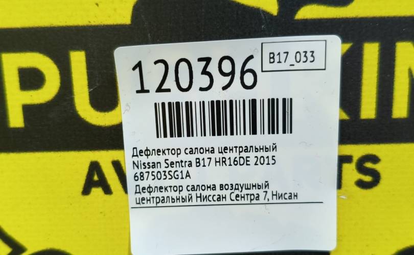 Дефлектор салона центральный Nissan Sentra 2015 687503SG1A B17 HR16DE