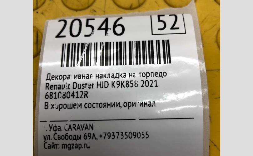 Декоративная накладка на торпедо Renault Duster 2021 681080412R HJD K9K858
