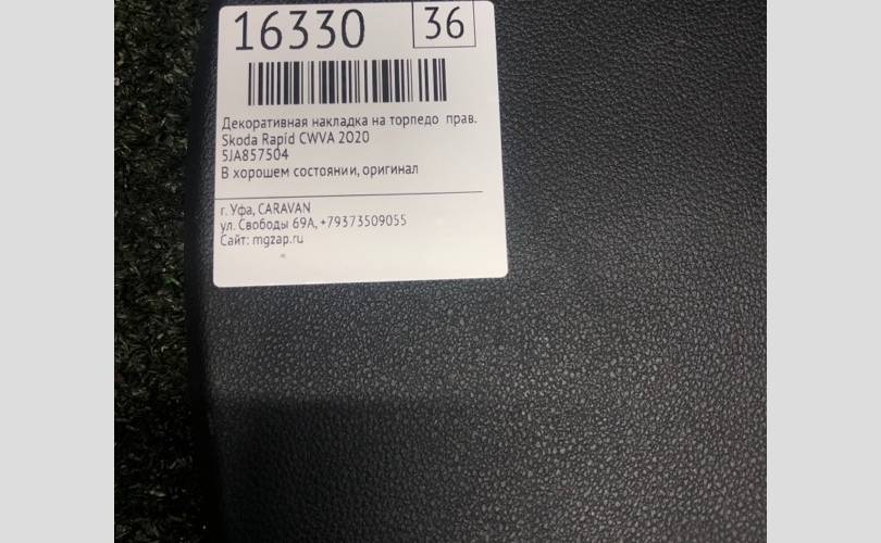 Декоративная накладка на торпедо Skoda Rapid 2020 5JA857504 CWVA, правая