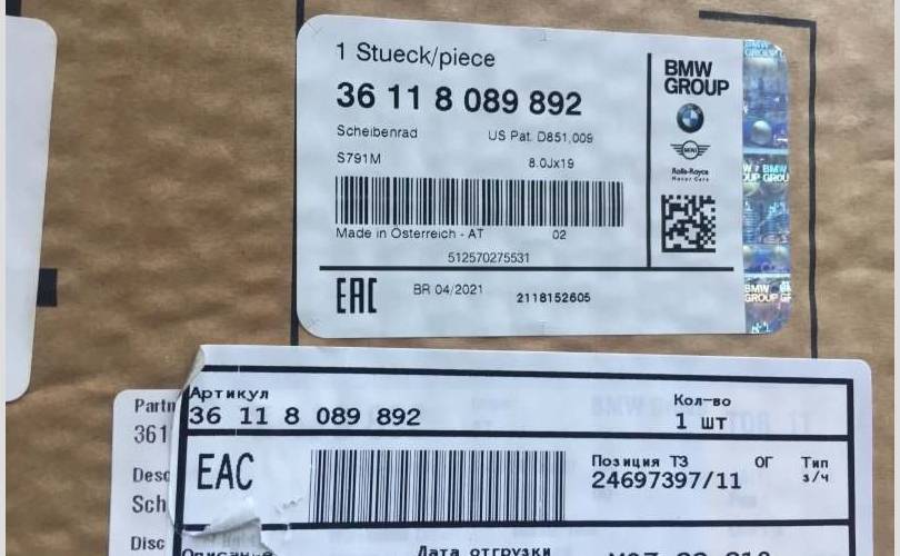 в наличии, см.фото, 36118089892 Диск литой R19 BMW 3er G20 (2018-н.в.) 791 стиль, в Химках, оригинал, бу