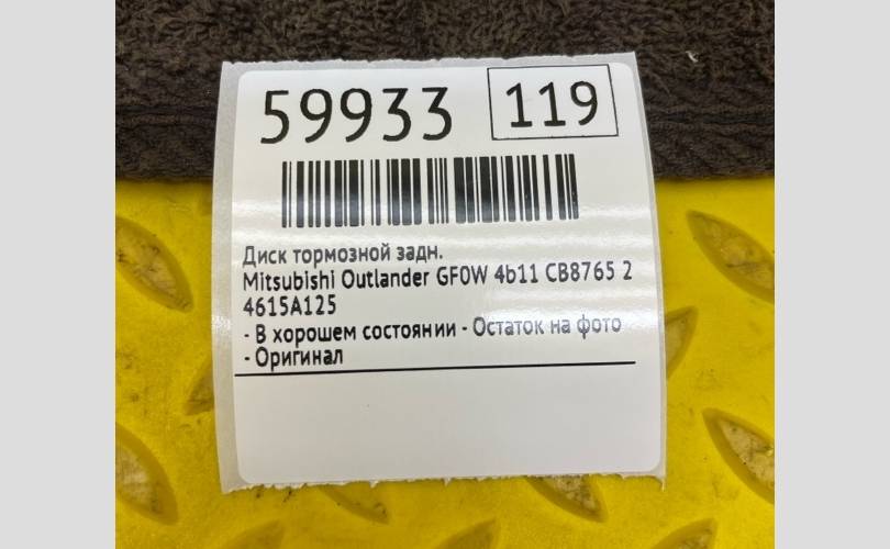 Диск тормозной Mitsubishi Outlander 2021 4615A125 GF0W 4B11 CB8765, задний