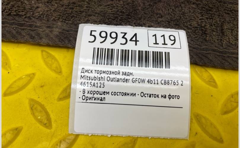 Диск тормозной Mitsubishi Outlander 2021 4615A125 GF0W 4B11 CB8765, задний