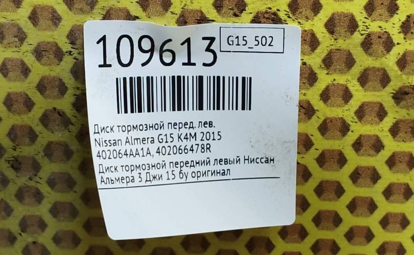 Диск тормозной Nissan Almera 2015 402064AA1A G15 K4M, передний левый