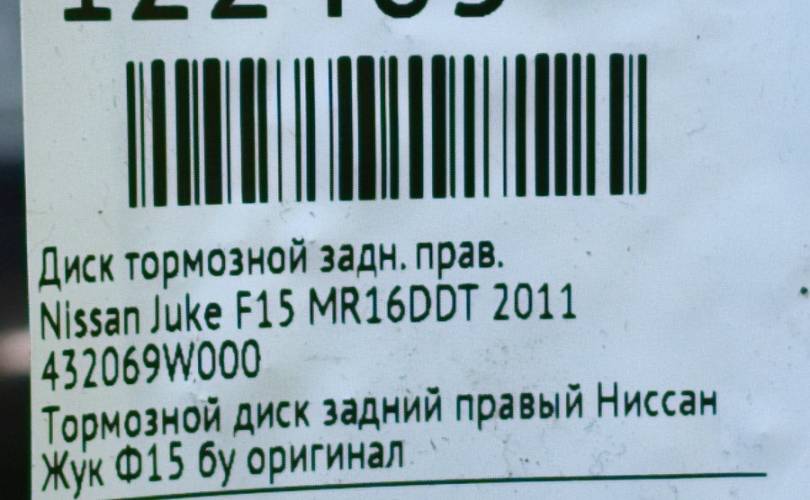 Диск тормозной Nissan Juke 2011 432069W000 F15 MR16DDT, задний правый